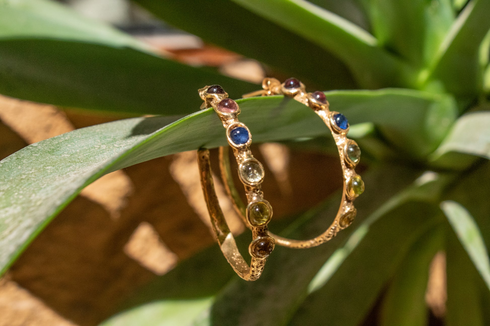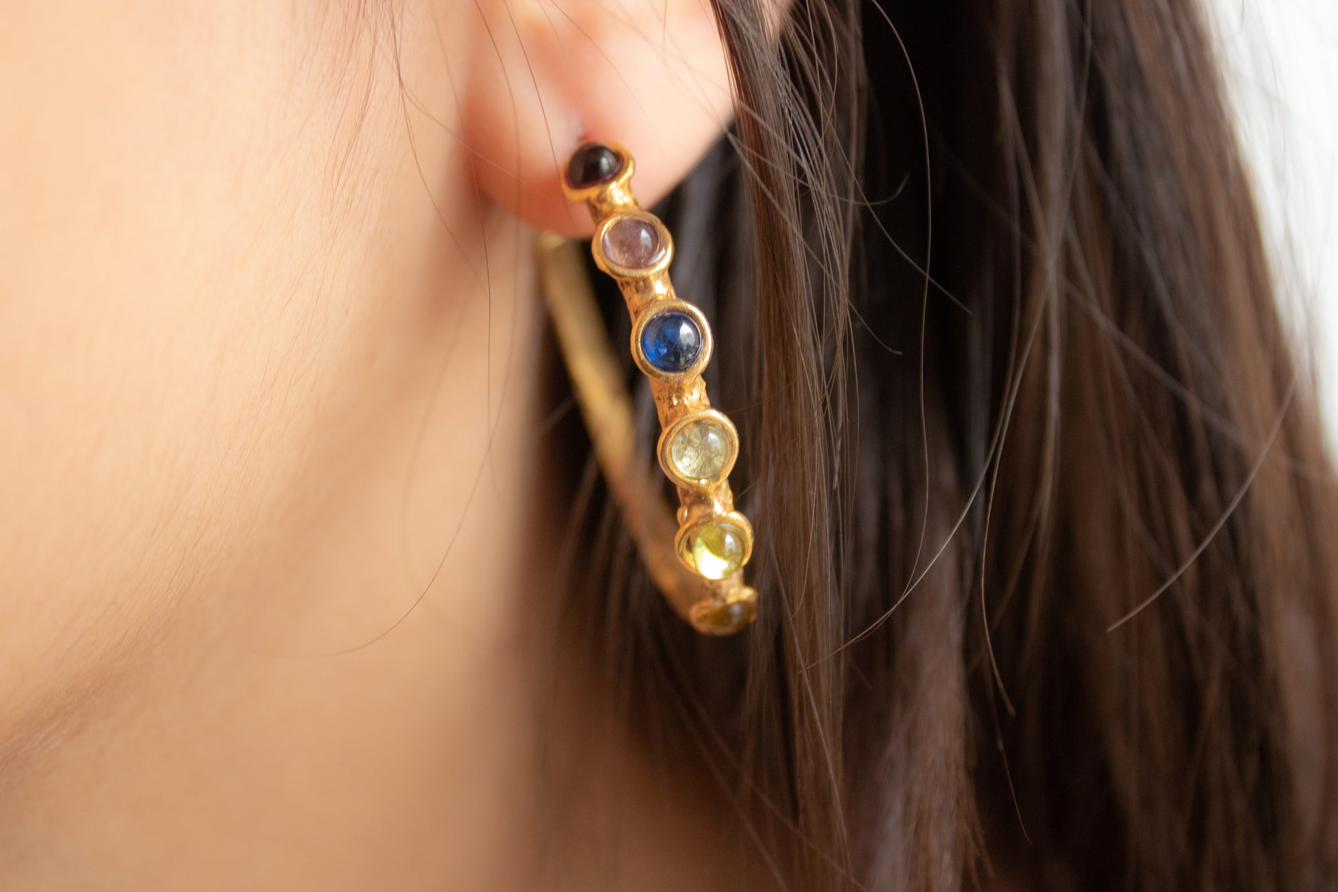 Medias arracadas de plata .925 con 6 gemas en cabujón