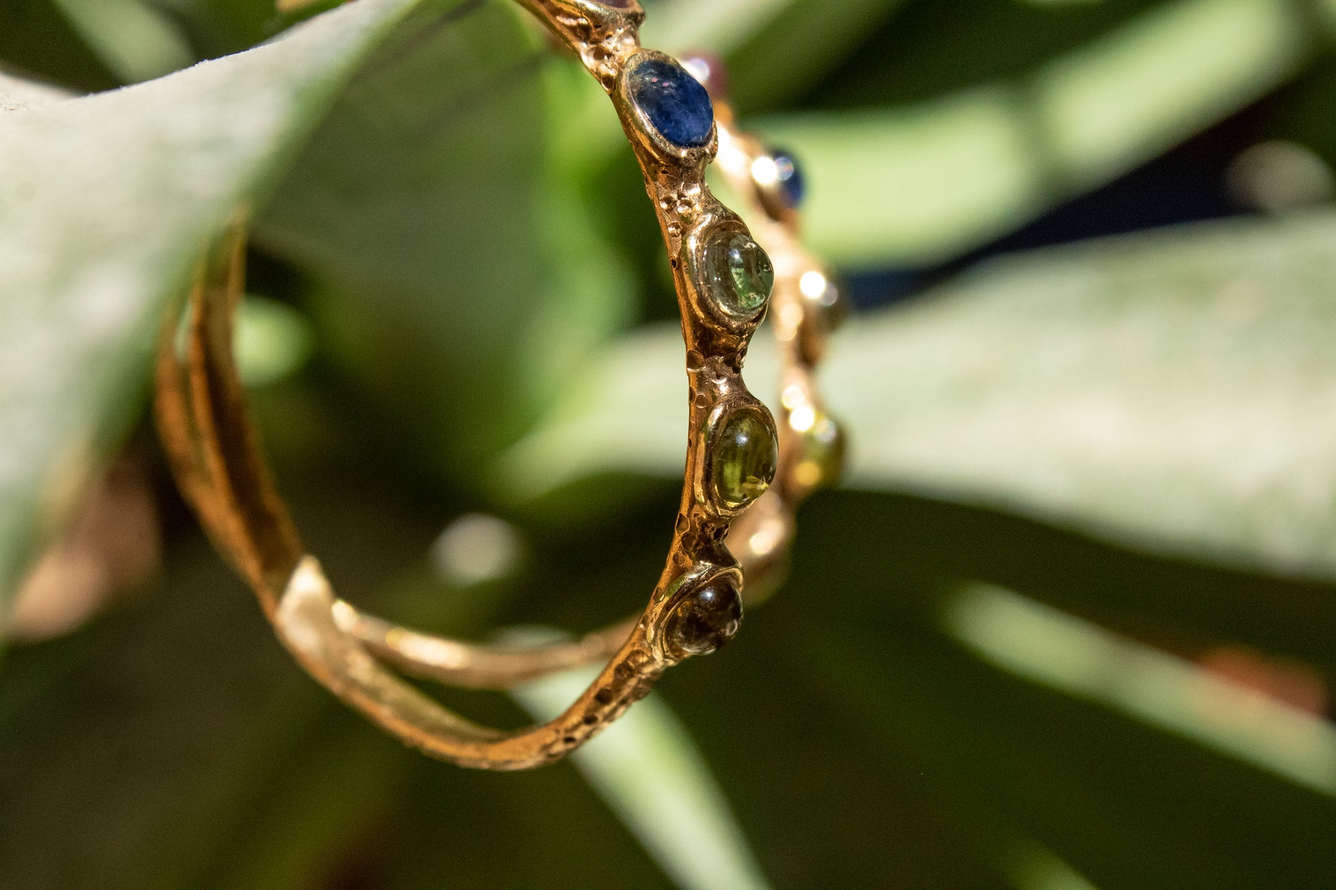 Gemas: Rodolita, amatista, zafiro azul, topacio azul, peridoto y citrino