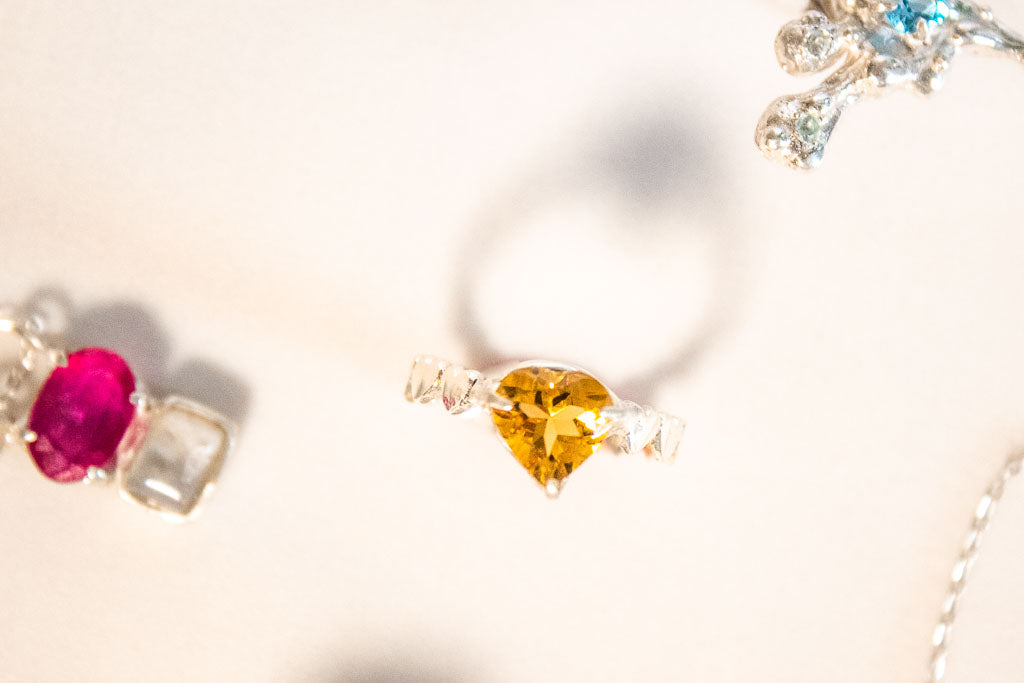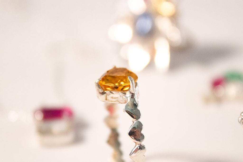 Anillo de plata .925 con banda de corazones y citrino corte corazón